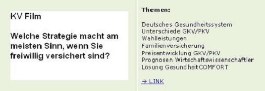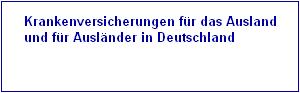 Krankenversicherungen sind Pflicht und kosten viel Geld. Wir zeigen Ihnen, mit welcher Strategie Sie Ihre Kosten halbieren können und wie Sie auf Nummer sicher gehen, dass Sie im Alter geringe Beiträge haben. Ärgern Sie sich nicht länger, wenn Sie hohe Beiträge zahlen müssen, ohne nennenswerte Kosten verursacht zu haben. Es gibt Versicherungslösungen, bei denen Sie, sofern Sie keine Rechnungen einreichen, 6 Monatsbeiträge zurückerhalten! Bei Angestellten kann dies bedeuten, dass ihr Netto- Beitrag in "gesunden Jahren" nahe 0 € liegt! Rufen Sie direkt an und lassen Sie sich informnieren, unter 0421/ 89 07 02 - Thorsten Gies oder schicken Sie uns Ihre Frage bzw. IhrenVerbesserungswunsch per e-mail (s. unten, Feedback-Kasten). Für Auswanderer und Personen, die längerfristige Auslandsversicherungen benötigen, können wir folgende Tarife anbieten (Direktabschluß möglich). Bitte auf den folgenden link klicken und im neuen Fenster die jeweiligen Auswahldaten eingeben, damit der jeweils passende Tarif gefunden wird. |